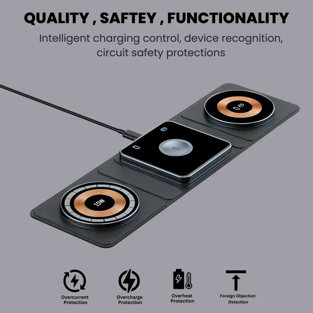 At Voltdock, we believe charging your devices should not be a hassle. With over 4 years of experience in electronics, we know how important it is to keep things simple, reliable, and safe. That’s why we created our 3 in 1 wireless charger so you can power your iPhone, Apple Watch, and AirPods all in one place. No more messy cables or searching for extra outlets. Just an easy, tidy way to stay charged. We care about good design, quality materials, and making sure our chargers work wherever life takes you. Home, office, travel, you are covered. Thank you for choosing Voltdock. We’re here to help you stay connected every day.