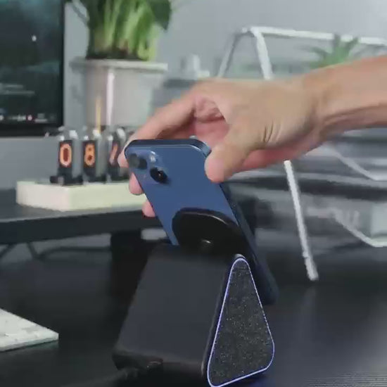 - 2-in-1 Design: Wireless Charger + Bluetooth Speaker